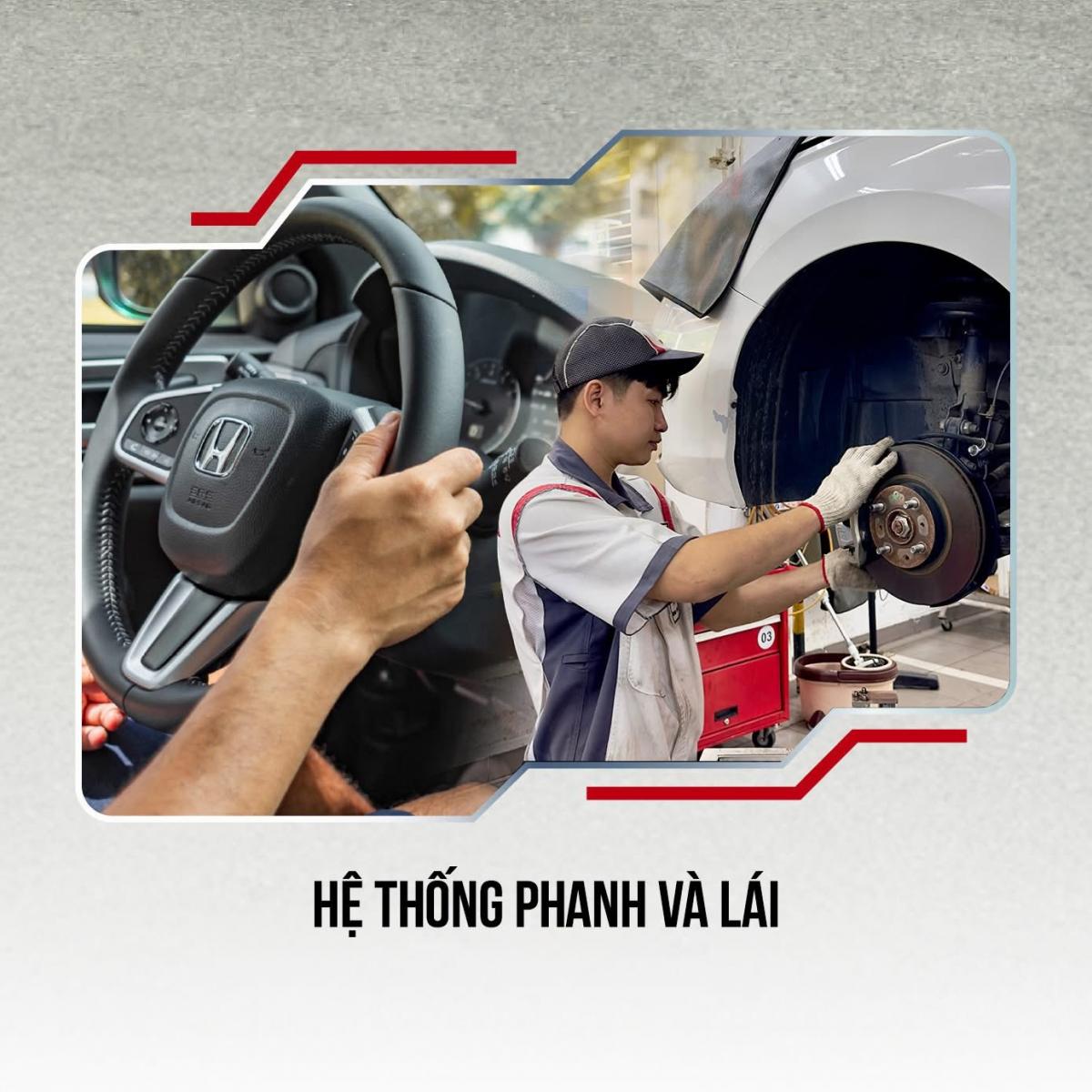 Đây là hai hệ thống ảnh hưởng trực tiếp đến khả năng kiểm soát và an toàn khi vận hành xe. Hãy kiểm tra mức dầu phanh, dầu trợ lực lái, đồng thời theo dõi độ mòn của má phanh để kịp thời thay thế khi cần thiết.