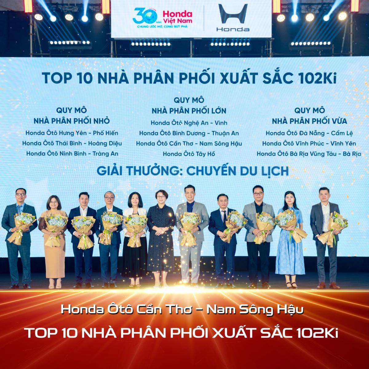 Khép lại 102Ki rực rỡ, Honda Ôtô Cần Thơ vô cùng tự hào khi được vinh danh tại hai hạng mục giải thưởng danh giá: