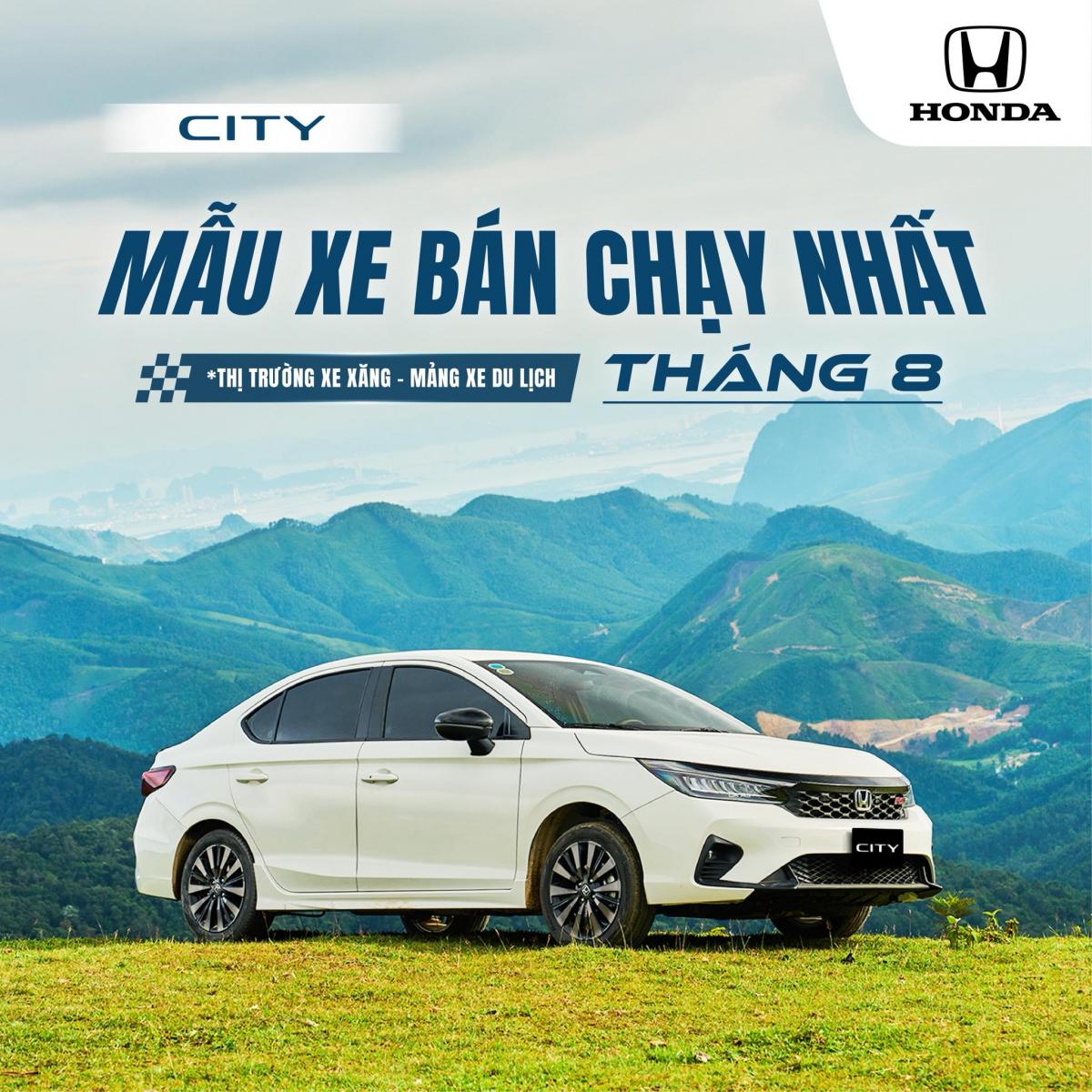 + Tháng 8/2025 đánh dấu bước tiến ấn tượng của Honda City khi vươn lên trở thành mẫu xe bán chạy nhất thị trường Xe xăng - mảng xe Du lịch. Theo số liệu từ Hiệp hội các Nhà sản xuất Ô tô Việt Nam (VAMA), đã có 1.136 chiếc Honda City được trao tay khách hàng trong tháng qua - minh chứng rõ ràng cho thấy sự tin tưởng và yêu mến của người dùng dành cho dòng xe này.