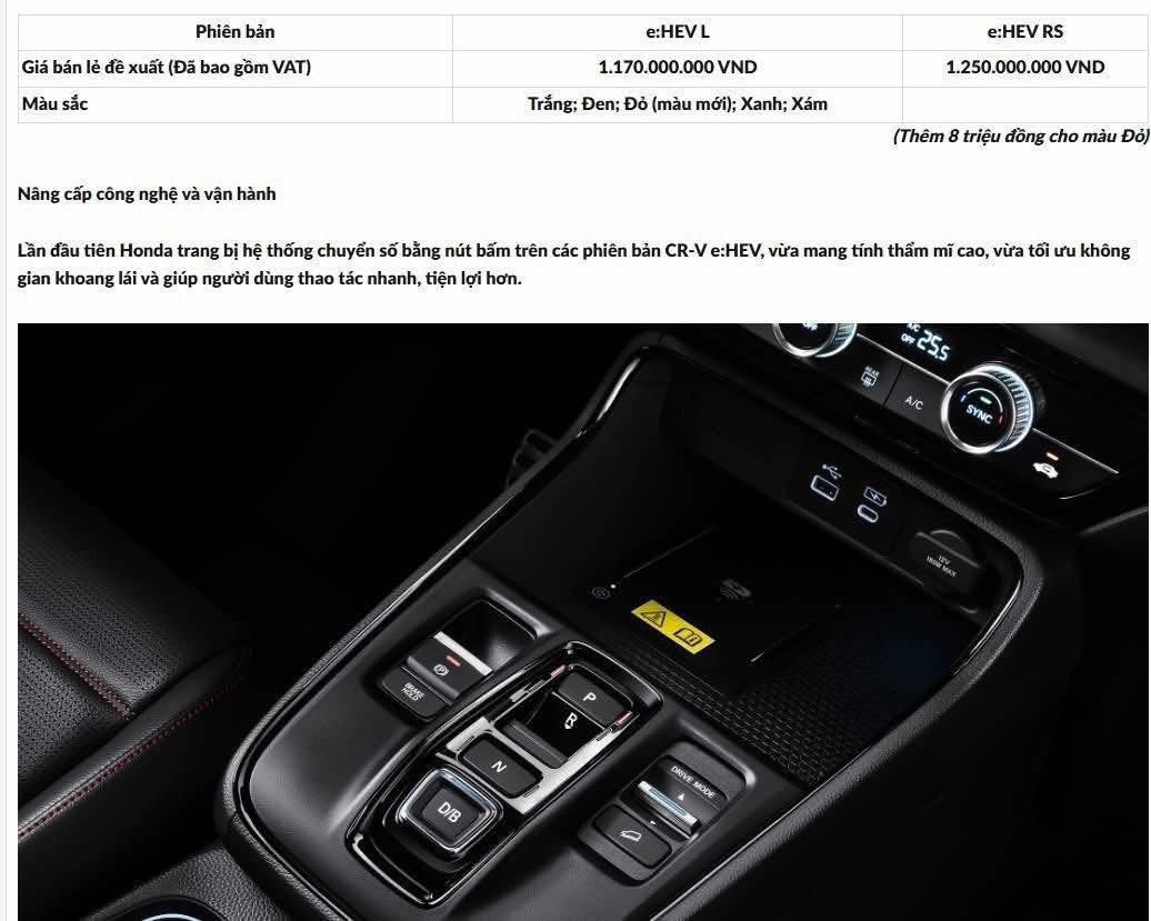 Ngày 02/02/2026, Honda Việt Nam chính thức giới thiệu phiên bản nâng cấp của dòng xe Honda CR-V e:HEV trên thế hệ thứ 6. Ngoài phiên bản e:HEV RS, lần đầu tiên bổ sung thêm phiên bản Hybrid – e:HEV L với những thay đổi đáng giá dành cho khách hàng.