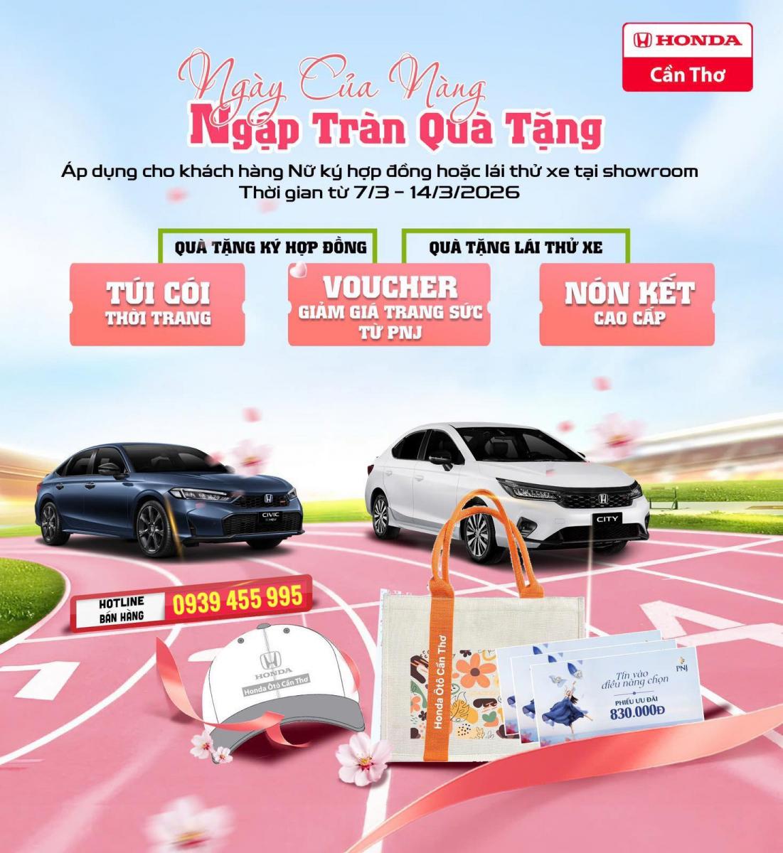 Tháng 3 gõ cửa mang theo sự dịu dàng và kiêu sa của phái đẹp. Honda Ôtô Cần Thơ xin dành trọn những ưu đãi đặc biệt nhất để tri ân những "bóng hồng" luôn vững vàng tay lái trên mọi hành trình: