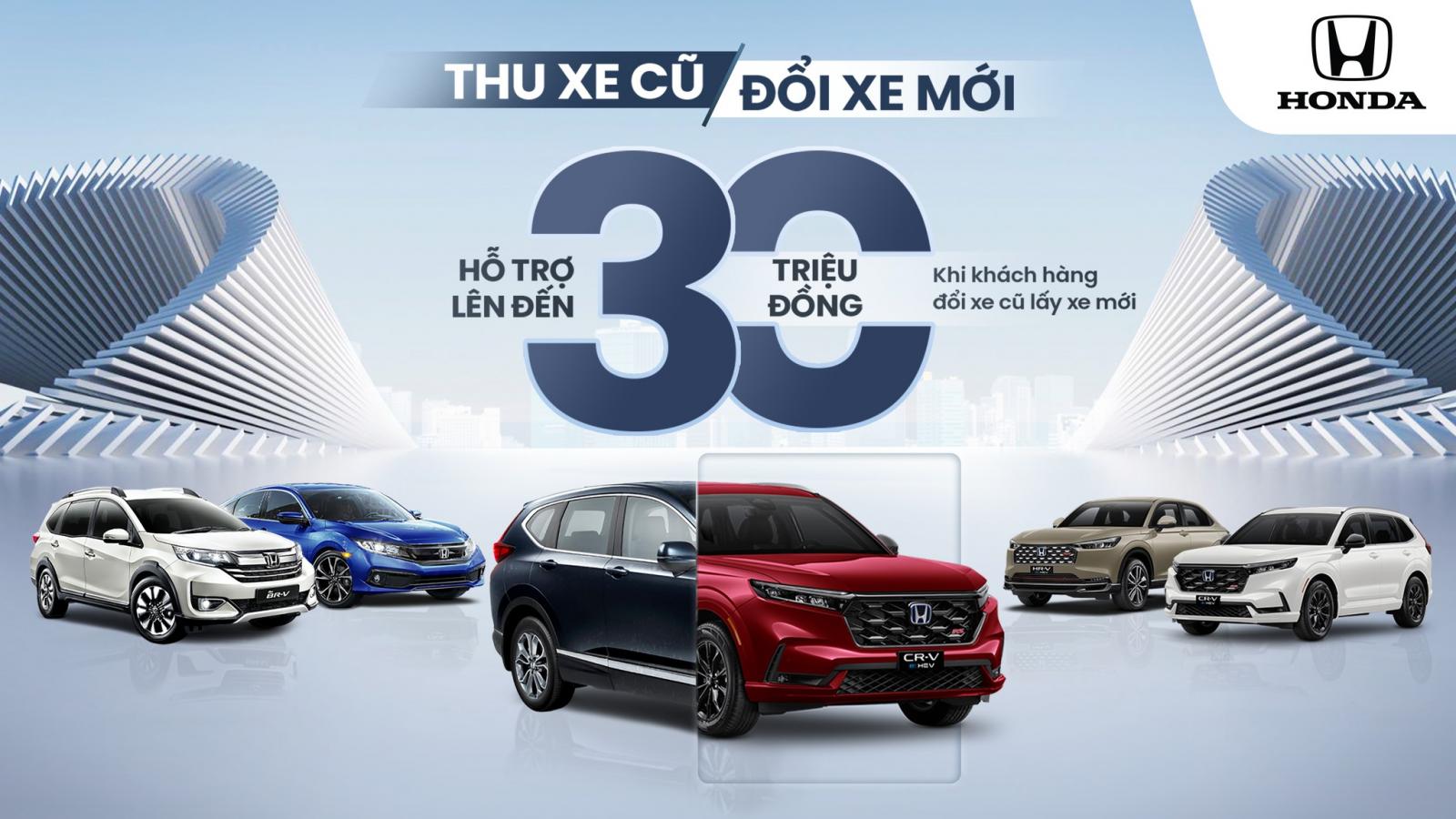 Với chương trình Thu xe cũ – Đổi xe mới, khách hàng sẽ được hỗ trợ lên đến 30 triệu đồng khi sở hữu các mẫu xe Honda chính hãng. Một cơ hội tuyệt vời để khởi đầu hành trình lái đầy tự tin, an toàn và tiện nghi vượt trội.